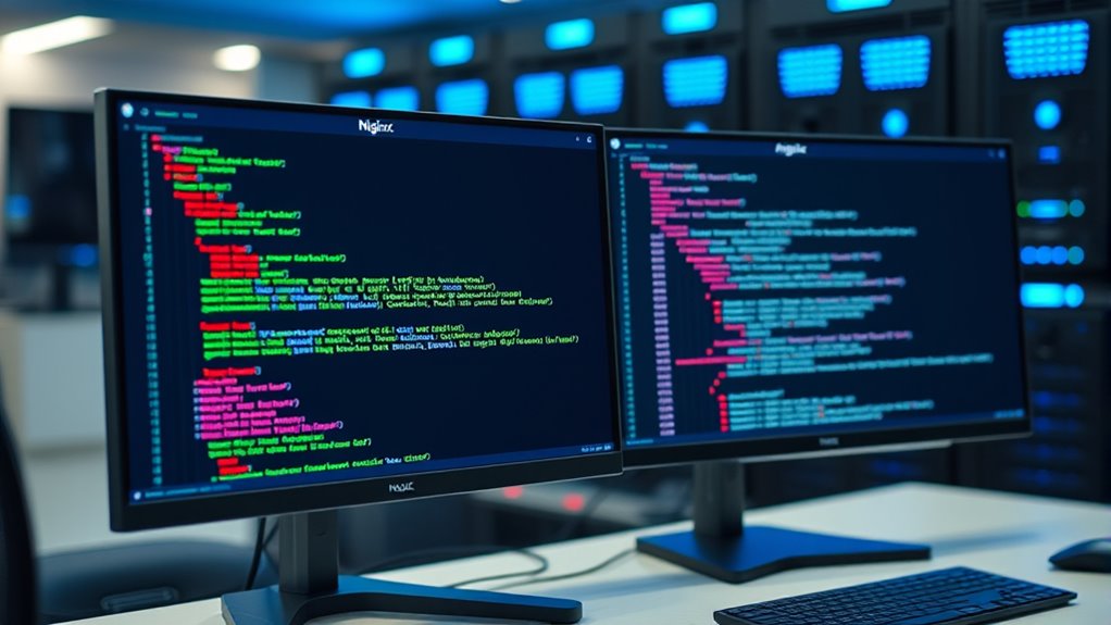 To optimize your web server for speed, choose Nginx for handling static content and high concurrency, as its event-driven architecture uses less memory and CPU. Use Apache for dynamic content with modules like PHP or Python, which handle requests internally. Enable caching, limit unnecessary modules, and configure keep-alive settings for both. Exploring how these configurations impact performance will help you maximize speed and resource efficiency—stay tuned for more insights on fine-tuning your setup.