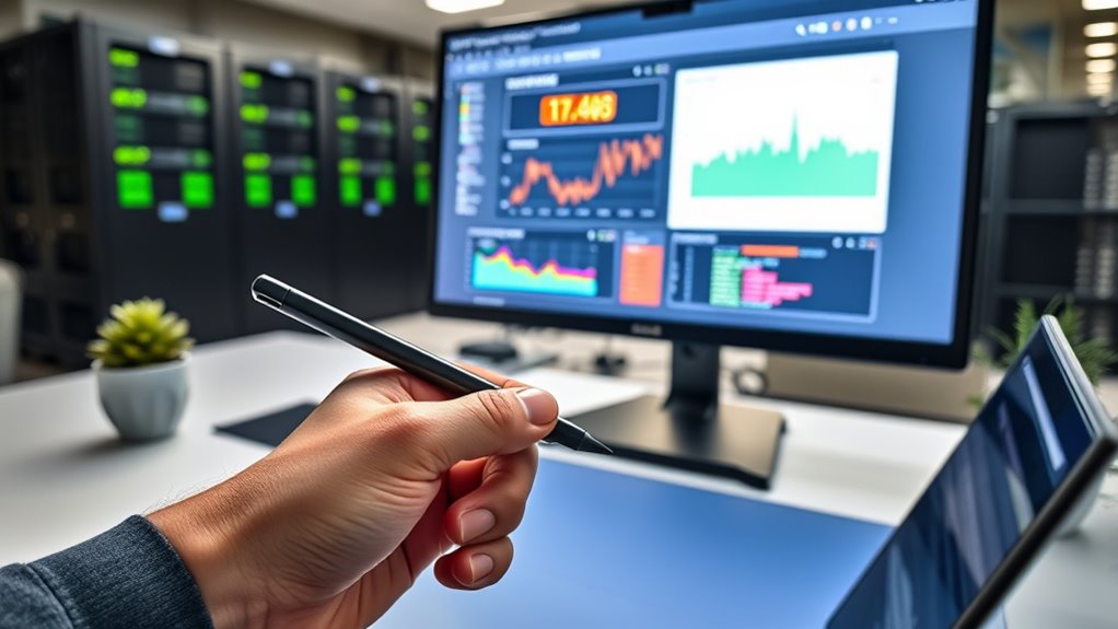 To reduce server response time using tools like Gtmetrix, start by analyzing your site’s performance metrics and waterfall charts to identify delays caused by scripts, images, or server issues. Focus on optimizing resources, upgrading hardware, or managing third-party scripts that slow down responses. Regular testing with Gtmetrix reveals bottlenecks and guides targeted improvements. If you want practical tips to boost your website’s speed, there’s more valuable insight ahead.