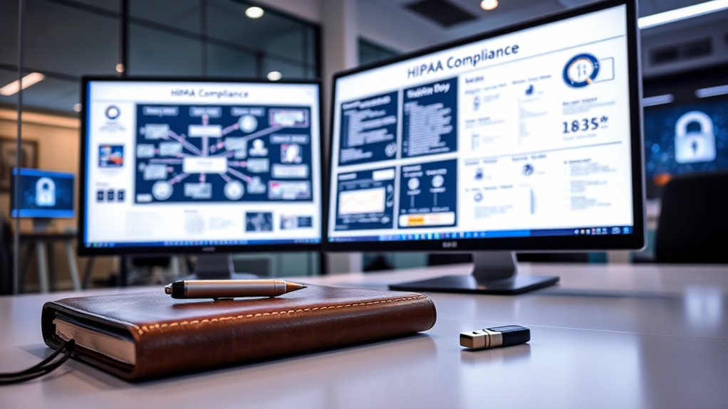 Maintaining thorough and accurate documentation is essential for ensuring HIPAA compliance and preparing for audits. You need to keep records of all security measures, including policies, procedures, and employee training. Regular risk assessments should be documented to identify vulnerabilities and track corrective actions. Audit trails are crucial for monitoring system activity and demonstrating accountability. It’s important to review and update security policies consistently to stay compliant. Additionally, maintaining detailed audit reports helps identify areas for improvement and provides evidence during reviews. Assigning a compliance officer ensures oversight of your efforts. Proper documentation not only supports ongoing compliance but also streamlines the audit process, showing that you’ve taken proactive steps to protect PHI and meet regulatory standards.