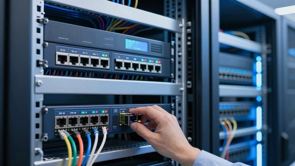 Implementing VLANs can feel like trying to navigate a maze blindfolded. Common challenges include configuring network segmentation accurately and ensuring traffic isolation without leaks. You might face difficulty in managing VLAN IDs consistently across devices, dealing with trunking issues, or troubleshooting connectivity problems. Proper planning and documentation are essential, but these hurdles can slow down your network’s growth and make maintaining security more complex.