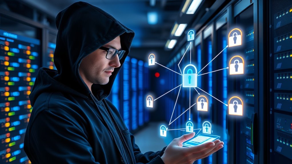 The core principles driving Zero Trust adoption center on a fundamental shift in how organizations approach security. You’re no longer trusting entities by default; instead, you verify and authenticate continuously. Multi-factor authentication and contextual signals make certain that every user, device, and application is verified regularly. You grant the least privilege access needed for specific tasks, reducing potential attack vectors. Microsegmentation divides your network into smaller zones, limiting damage if a breach occurs. Ongoing monitoring in real-time helps you detect and respond to risks swiftly. Plus, you restrict lateral movement within your network, limiting a breach’s impact. These principles collectively create a security environment where trust is earned, not assumed, making your organization more resilient against evolving threats. Additionally, implementing security layers like layered defenses ensures comprehensive protection across all facets of your infrastructure. Moreover, understanding the importance of identity verification is crucial, as it forms the backbone of the Zero Trust security model and aligns with advanced techniques to enhance overall cybersecurity posture. Incorporating continuous validation processes further strengthens the security framework by ensuring that trust is maintained only through ongoing confirmation rather than static credentials. Recognizing the significance of network segmentation helps limit the scope of potential breaches and contain threats effectively.