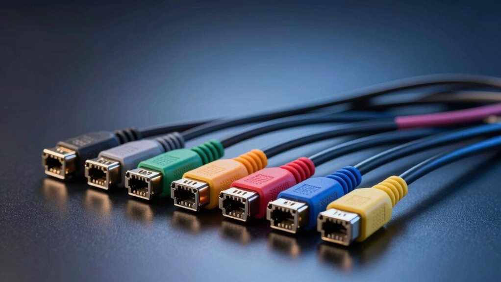Choosing the right cable length and gauge is crucial for ensuring peak performance in your 25GbE DAC setup. I’ve found that matching the cable length to your network’s specific distance requirements is key to maintaining signal integrity. Shorter cables, typically under 1 meter, usually provide lower attenuation and crosstalk, enhancing data transfer rates. When it comes to gauge, I prefer 30AWG for its flexibility, but thicker gauges can support longer distances and better power delivery. Just remember, as cable length increases, signal degradation can occur, so you might need higher-quality materials or active components for maximum performance. Selecting the right length and gauge minimizes latency, interference, and potential transmission errors, ensuring reliable connectivity.