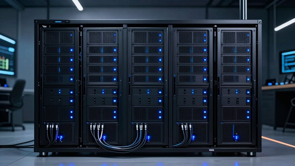 Power consumption among 2U rackmount servers varies based on their components and workload. I’ve seen some models consume as little as 300 watts during low activity, while high-performance servers with multiple CPUs and extensive storage can draw over 800 watts. It’s essential to take into account your needs; efficient models reduce energy costs, but high-performance ones handle demanding tasks better. Balancing power use and performance is key for ideal data center operation.