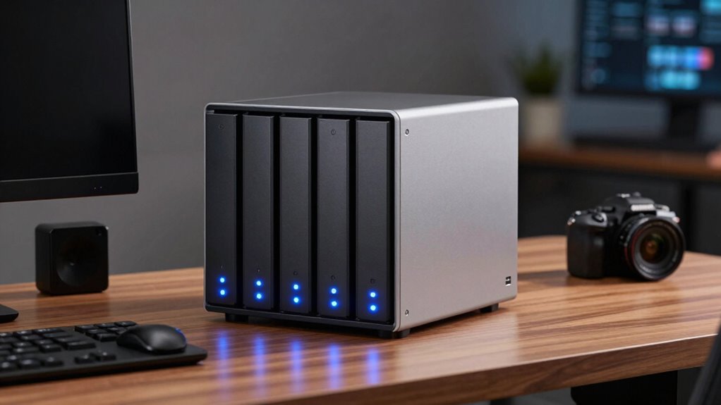 When selecting a 4-bay NAS, I focus on your storage needs, performance specs, and software compatibility to guarantee it fits your workflow. Connectivity options and budget also play a vital role in making a smart choice. Let’s explore these factors so you can find the best device for your requirements.