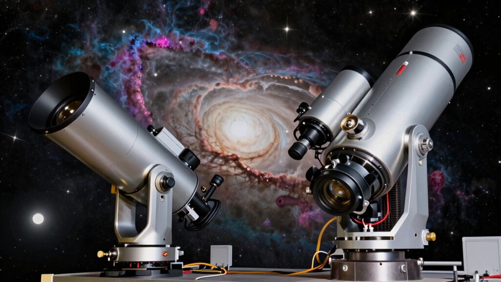 When selecting a cooled CMOS astro camera, I consider factors like sensor sensitivity and quantum efficiency to guarantee I capture faint details. Cooling efficiency and noise reduction are vital for high-quality images, while resolution and pixel size affect the level of detail I can achieve. I also look at connectivity options and software features to make certain the camera integrates smoothly with my equipment and workflow.