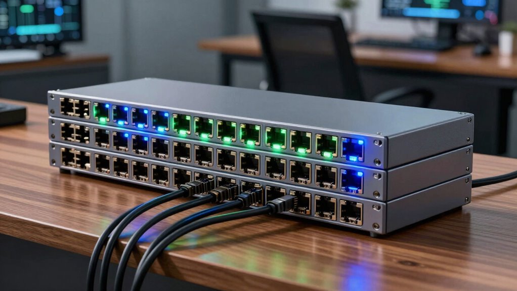 Choosing the right desktop 10GbE switch feels like finding the perfect gear for a smooth ride—each port, feature, and speed bump carefully aligned. As you navigate your network’s landscape, these switches act as your reliable compass, guiding data seamlessly through every twist and turn. With the right choice, your setup becomes a well-oiled machine, humming with power and precision, ready to propel your digital world into a new era of lightning-fast connections.