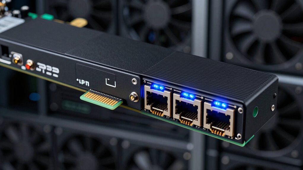 Dual port 10GbE NICs often deliver aggregate bandwidths up to 20Gbps, but actual speeds depend heavily on system setup and network conditions. Each port typically maxes out at 10Gbps, yet protocol overhead and congestion can reduce effective throughput. To fully leverage these speeds, your network infrastructure and connected devices must support 10GbE. Traffic management features like QoS can influence real-world performance by prioritizing critical data streams. Keep in mind, achieving the theoretical maximum requires an optimized environment free of bottlenecks. Factors like CPU performance, driver efficiency, and switch capabilities all play essential roles. When selecting a NIC, consider these limits to ensure your setup can handle the desired throughput without compromise, especially as network demands continue to grow.