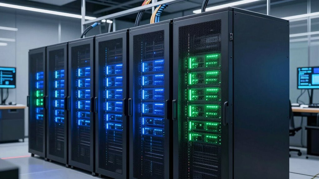 Selecting an edge computing server requires careful attention to its connectivity features, as these determine how effectively it communicates with other devices and networks. I look for servers with multiple connectivity options like Ethernet, cellular, and Wi-Fi to guarantee versatile integration. High-speed interfaces such as 2.5GbE or 10GbE are essential for fast data transfer and low latency. Seamless connection to cloud platforms and support for IoT protocols like MQTT and Modbus are vital for remote management and data exchange. Devices with dual or multiple network ports help with redundancy, load balancing, and reliable connectivity, especially in critical applications. Additionally, built-in security features like VPNs, firewalls, and protocol encryption safeguard data transmitted across various connection types, guaranteeing both performance and security.