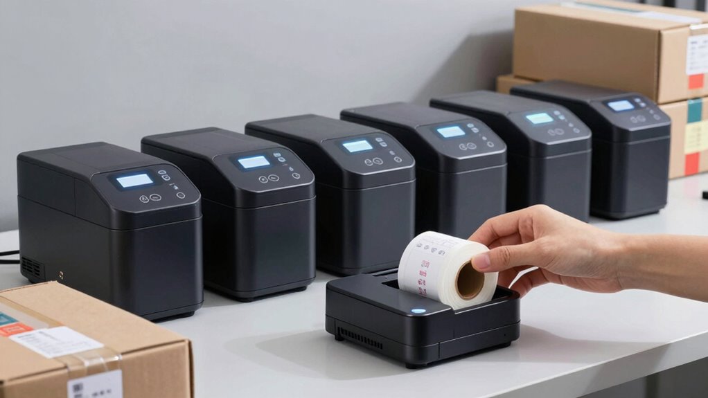 In conclusion, choosing the perfect label printer boils down to finding a device that’s dependable, portable, and packed with features. Whether you prefer Bluetooth, thermal technology, or compact design, there’s a printer that fits your shipping needs. By balancing budget, bandwidth, and bulk, you’ll boost your business’s efficiency effortlessly. Remember, the right label printer not only simplifies shipping but also secures your success—so select smart, stay steady, and streamline your shipping solutions today!