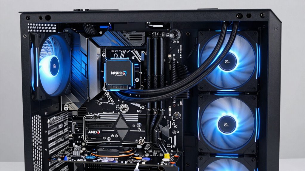 When choosing a liquid cooler for your Threadripper, I consider several key factors to guarantee optimal performance. Compatibility with the socket, cooling efficiency, and noise levels are essential, but ease of installation and maintenance also play big roles. Understanding these points helps me pick a cooler that fits my needs perfectly.