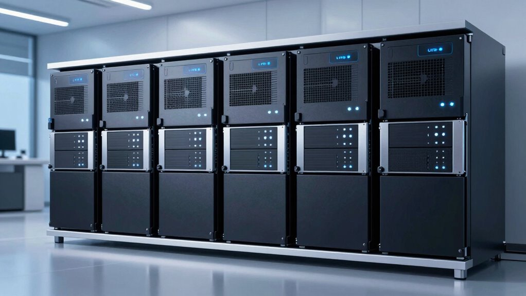 Maintenance costs for LTO-9 tape drives are like tending a delicate garden; they’re manageable but require consistent care. Typically, you’ll spend around $200 to $500 annually on routine upkeep, including cleaning and occasional repairs. These expenses are modest compared to the value of your data. Staying proactive with regular maintenance guarantees your drive performs smoothly, turning data preservation into a seamless, worry-free experience.