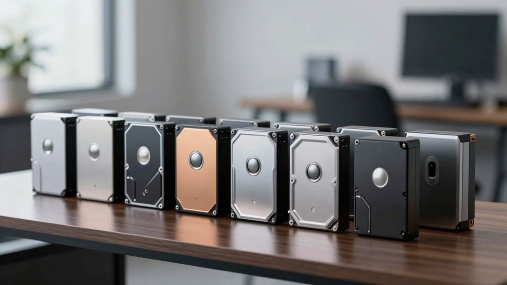 When it comes to encryption options for external hard drives, I’ve found several effective methods. Most drives offer hardware encryption, which secures your data automatically. Software encryption is another choice, allowing me to use programs like VeraCrypt or BitLocker. I often prefer AES (Advanced Encryption Standard) for its strong security. Whichever you choose, always guarantee your encryption method is compatible with your operating system to keep your data safe and accessible.