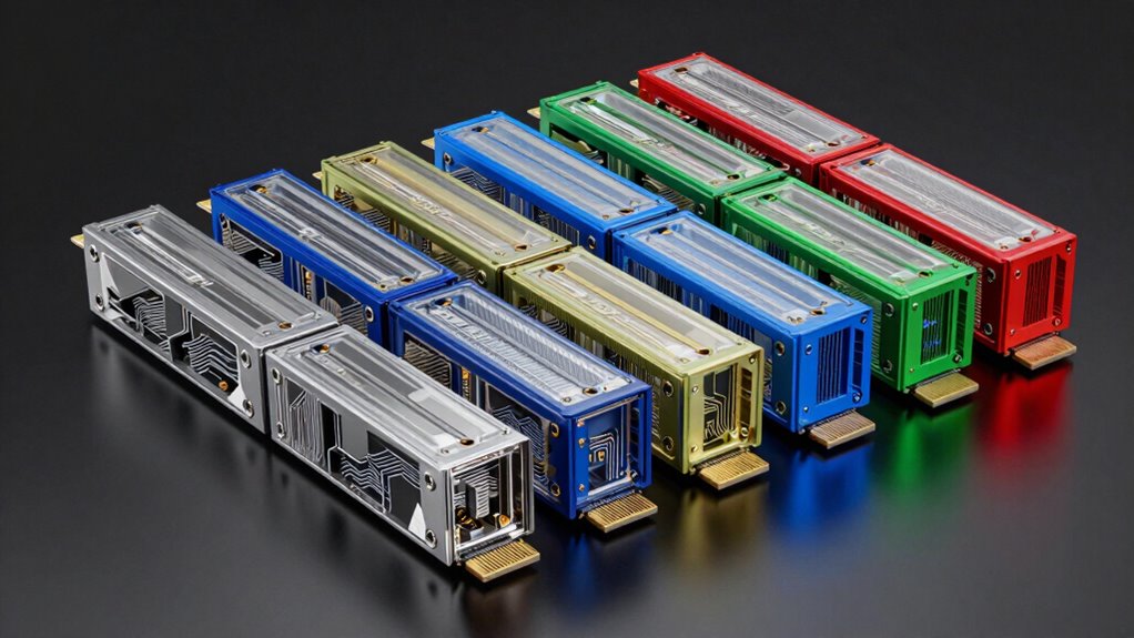 When selecting a PCIe bifurcation riser, prioritizing build quality and materials is essential for guaranteeing reliable performance. High-quality risers feature durable components like gold-plated contacts, which provide excellent electrical conductivity and resist corrosion. Multi-layer PCBs, especially those with UL certification and heat-resistant materials, minimize thermal deformation and electrical failures. Full coverage shielding in the flat cable reduces electromagnetic interference (EMI) and signal degradation, preserving high data transfer speeds. Ultra-thin cables, around 1.0mm thick, improve flexibility without sacrificing signal integrity. Additionally, robust construction with corrosion-resistant parts ensures long-term stability, even in demanding environments. Choosing a riser built with premium materials guarantees consistent performance, durability, and peace of mind during intensive computing tasks.