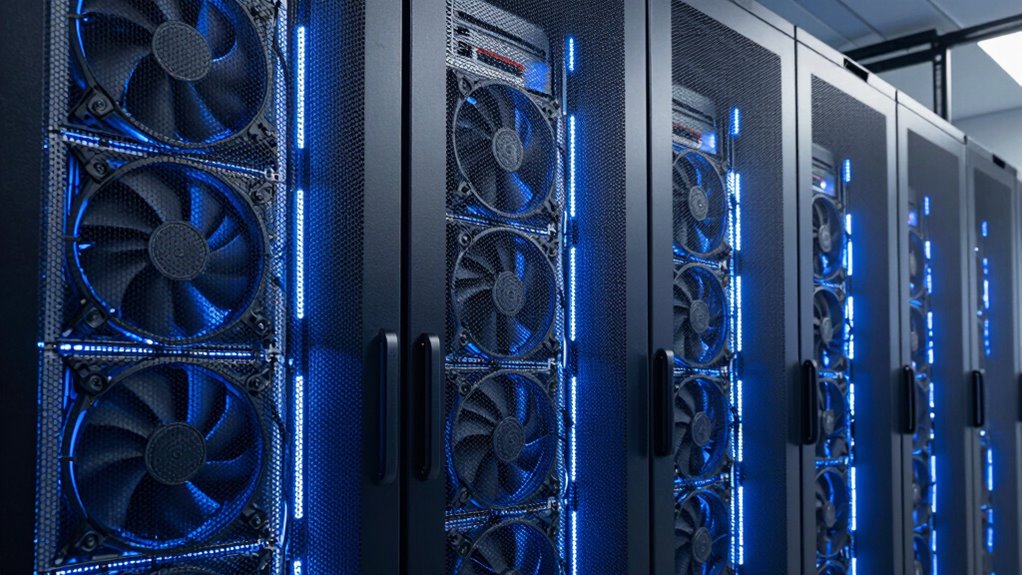 While I focus on airflow capacity for my rackmount fan trays, I can’t overlook noise levels, especially in sensitive environments. Noise levels are measured in decibels (dBA), and lower values mean quieter operation. I aim for fans that produce between 8-28 dBA, as they’re considered ultra-quiet and perfect for noise-sensitive settings. On the other hand, high-performance fans can reach 36-49 dBA, which might disrupt a quiet atmosphere. It’s also important to contemplate the type of bearing; dual ball bearings typically run more quietly. Finally, I appreciate fans with adjustable speed control, allowing me to find that sweet spot between cooling efficiency and noise reduction, depending on what I need at the moment.