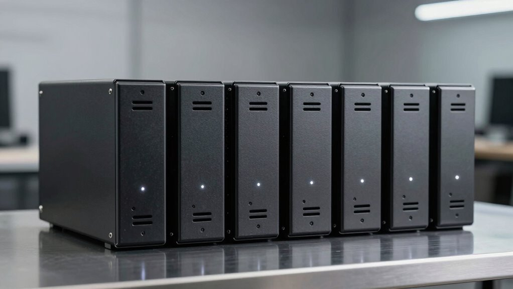 Yes, these chassis can support high-density storage configurations, but it varies by model. I always check the specifications for drive bays, backplane support, and cooling options to guarantee they can handle multiple drives or SSDs. I also consider the compatibility with RAID controllers and power supplies. If you’re aiming for maximum storage, choose a chassis designed specifically for high-density setups to avoid future limitations.
