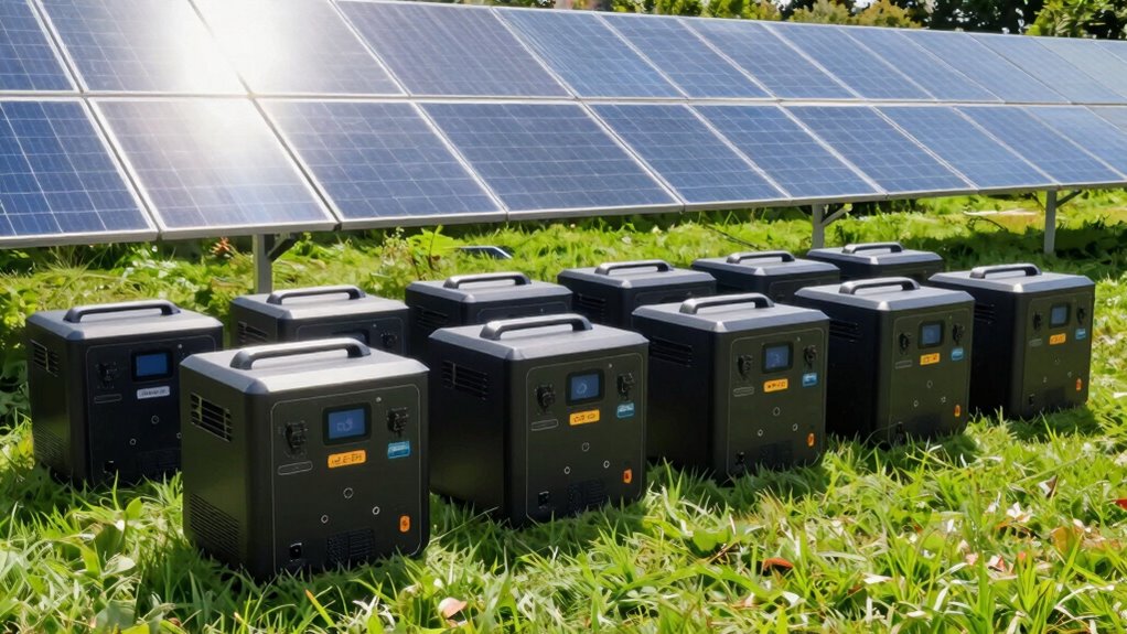 Maintenance needs vary depending on the model, but generally, I find that portable solar generators require minimal upkeep. I check connections and clean panels regularly to guarantee peak performance. Some models with advanced batteries may need occasional firmware updates or battery health checks. More sophisticated units might have filters or cooling systems that need attention. Overall, I’d say staying consistent with simple inspections keeps my solar generator running smoothly.