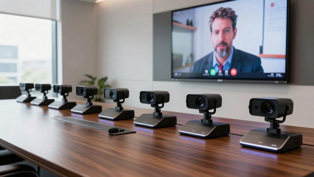 Think of top conference systems as digital fortresses guarding your meetings. They include robust encryption, ensuring your conversations stay private like a secret kept in a vault. Multi-factor authentication adds an extra layer of security, and regular firmware updates patch vulnerabilities. I’ve seen these features protect sensitive data effectively, giving users confidence that their discussions remain confidential. These cybersecurity features are essential for safeguarding your organization’s most valuable information.