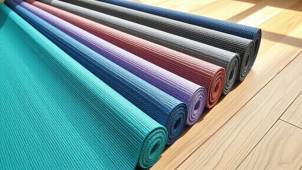 Think of thickness as the Goldilocks of yoga mats—neither too thin nor too thick. For beginners, I recommend a mat around 4-6mm thick. It offers enough cushioning to protect your joints while still providing stability for balance poses. A mat that’s too thick can feel like walking on a cloud, making it hard to balance. So, go for that perfect middle ground—just enough to support and comfort your practice.
